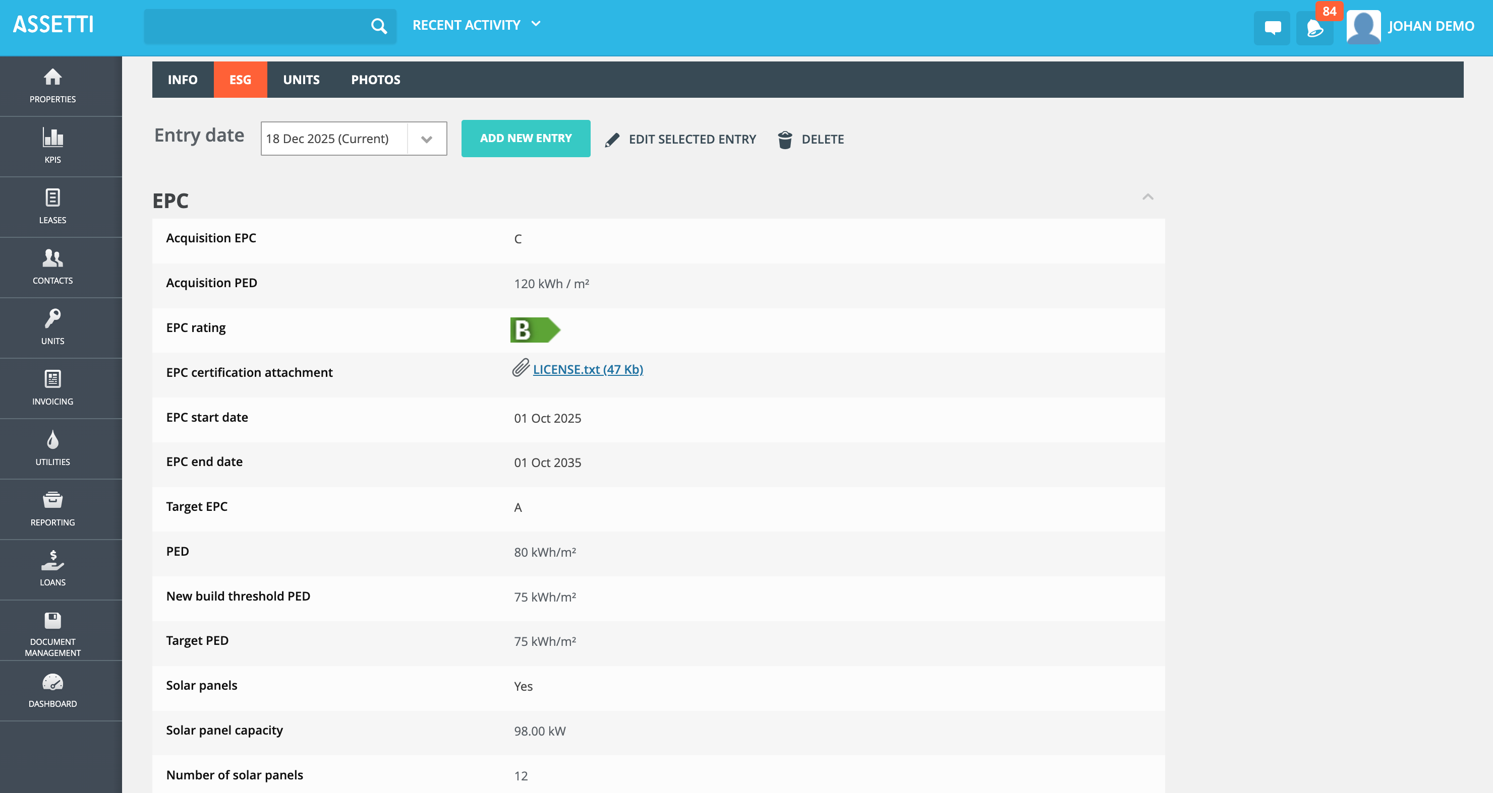 As many of us know, a lot of ESG related data needed for reporting is still captured, maintained and updated in some kind of master Excel file - especially when consolidating data from numerous systems and sources needed for the reporting. One of the data sets to be captured are certificates, such as EPC, Breeam, and LEED, to name a few. With the enlargement of Assetti's ESG data factsheet you can now save and keep track of the data and its changes needed for reporting purposes. This saves time, improves quality and enables the audibility of the data in reporting. If interested to hear more, contact our sales.