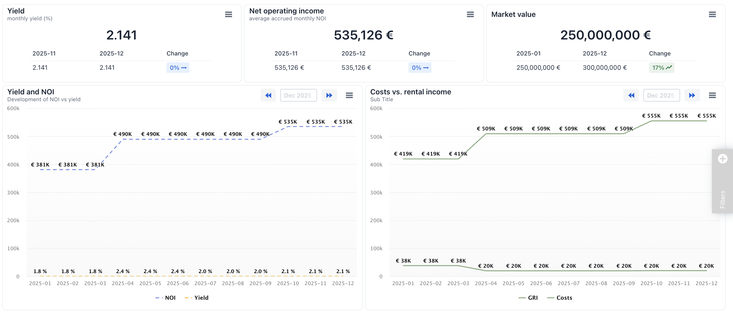 We offer, though, ready made templates to our customers so you don't need to start from the scratch. If managing, for example, a commercial or residential portfolio we can pick up from our dedicated off-the-shelf set of widgets, and publish you a dashboard pretty fast. If not convinced, contact us, and we will show you!